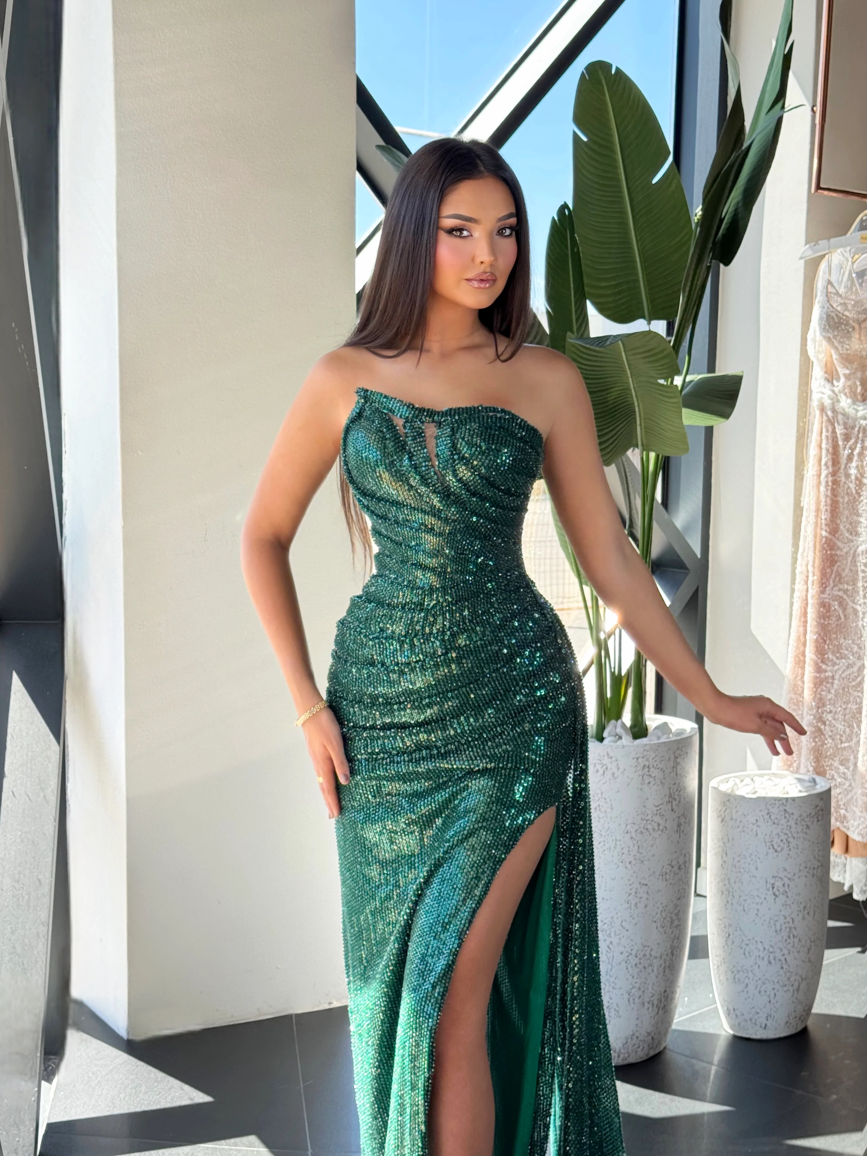 The Oaklyn Grace dress is fully covered in shimmer, giving it a sparkling and eye-catching look. ✨